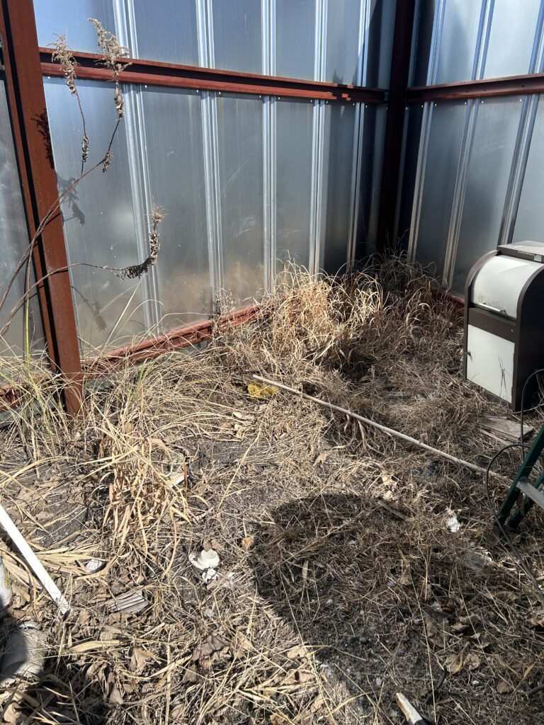 土日休みの方が多いため、大抵土日は予約で埋まる傾向がございますが、本日は珍しく依頼が入っていなかったため、置き場整理や草刈りに充てました